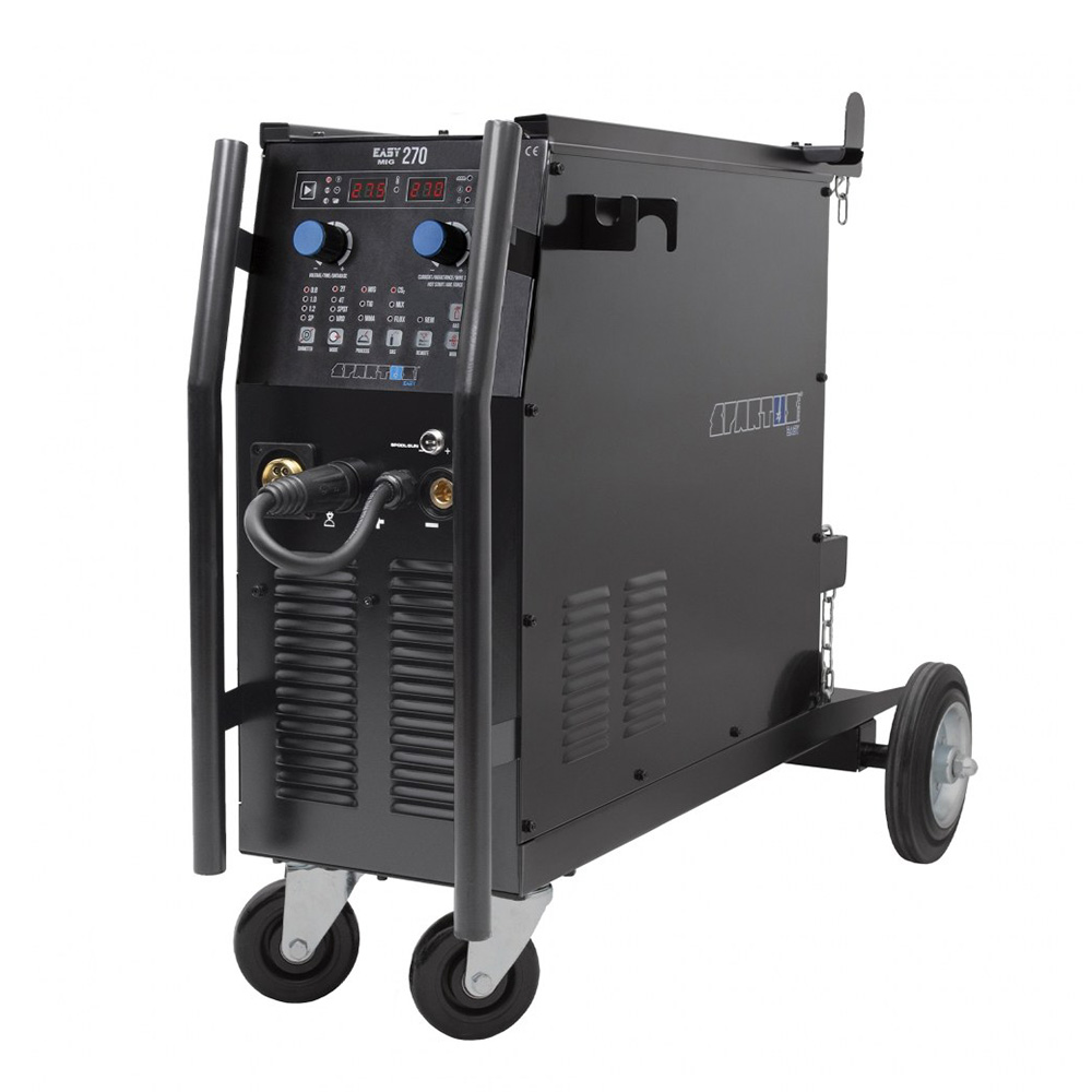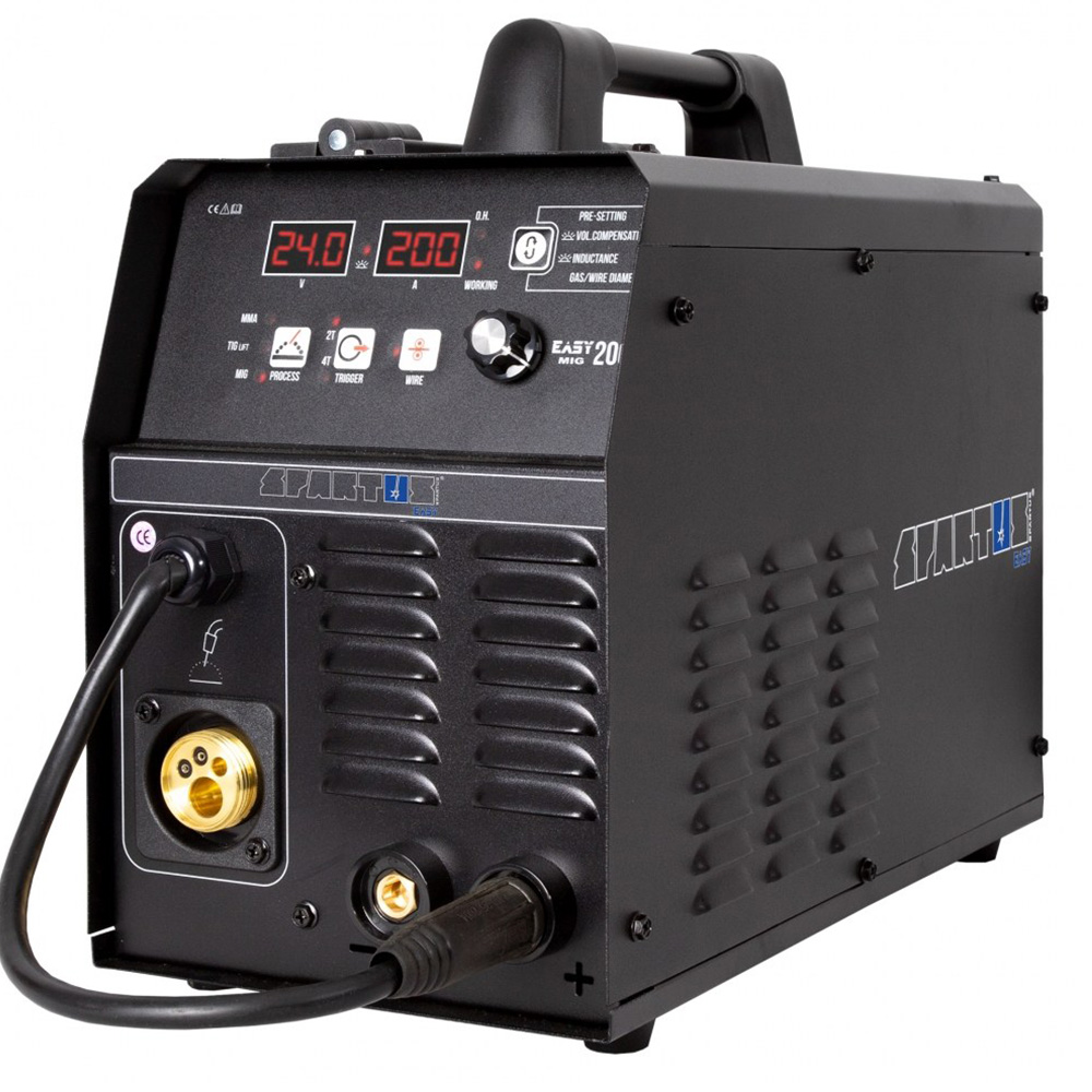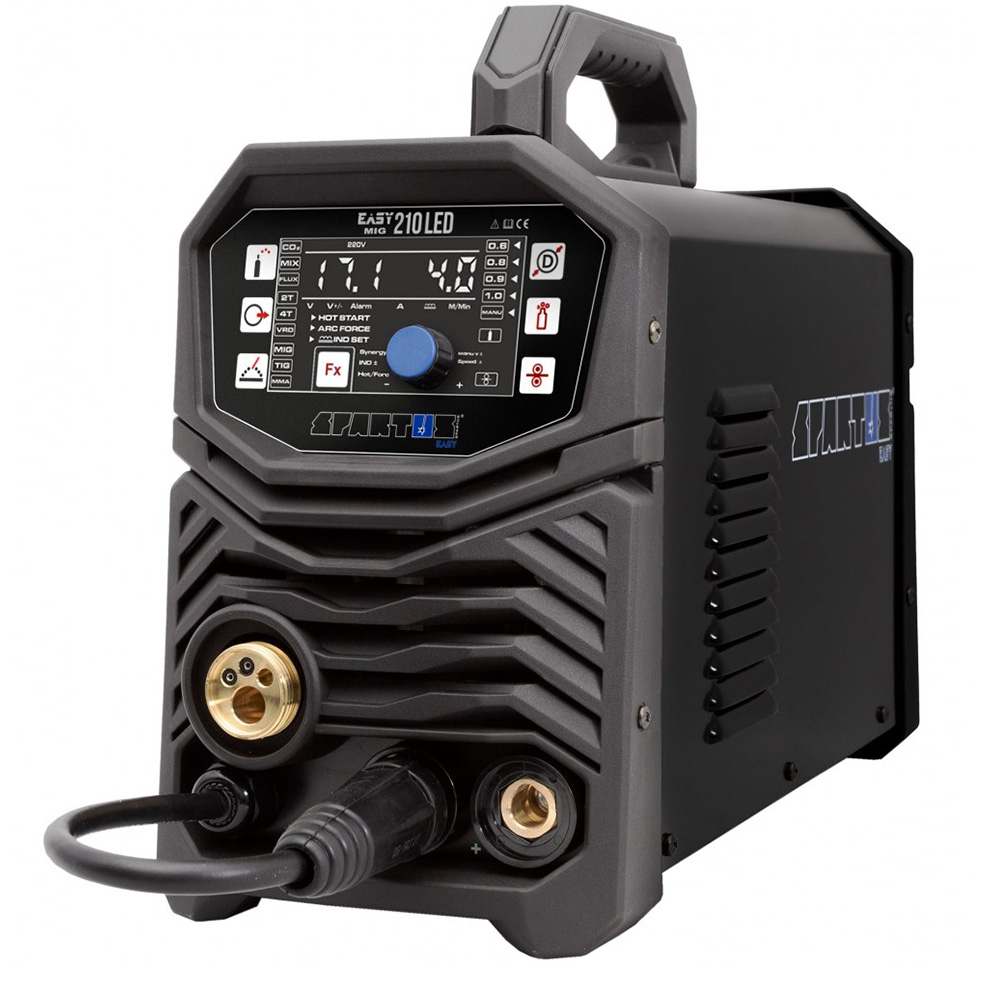 For a home workshop, compact MIG/MAG welders with a welding current of 160–200 A and 230 V power supply are the best choice. They provide good weld quality on structural steel and are easy to operate. Classic SPARTUS models offer a stable arc and a wide range of applications, making them suitable for both small repairs and building light structures.