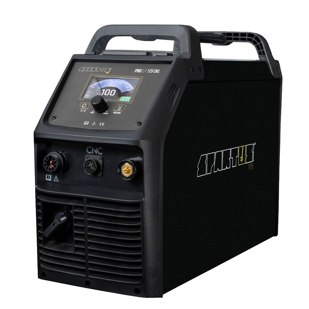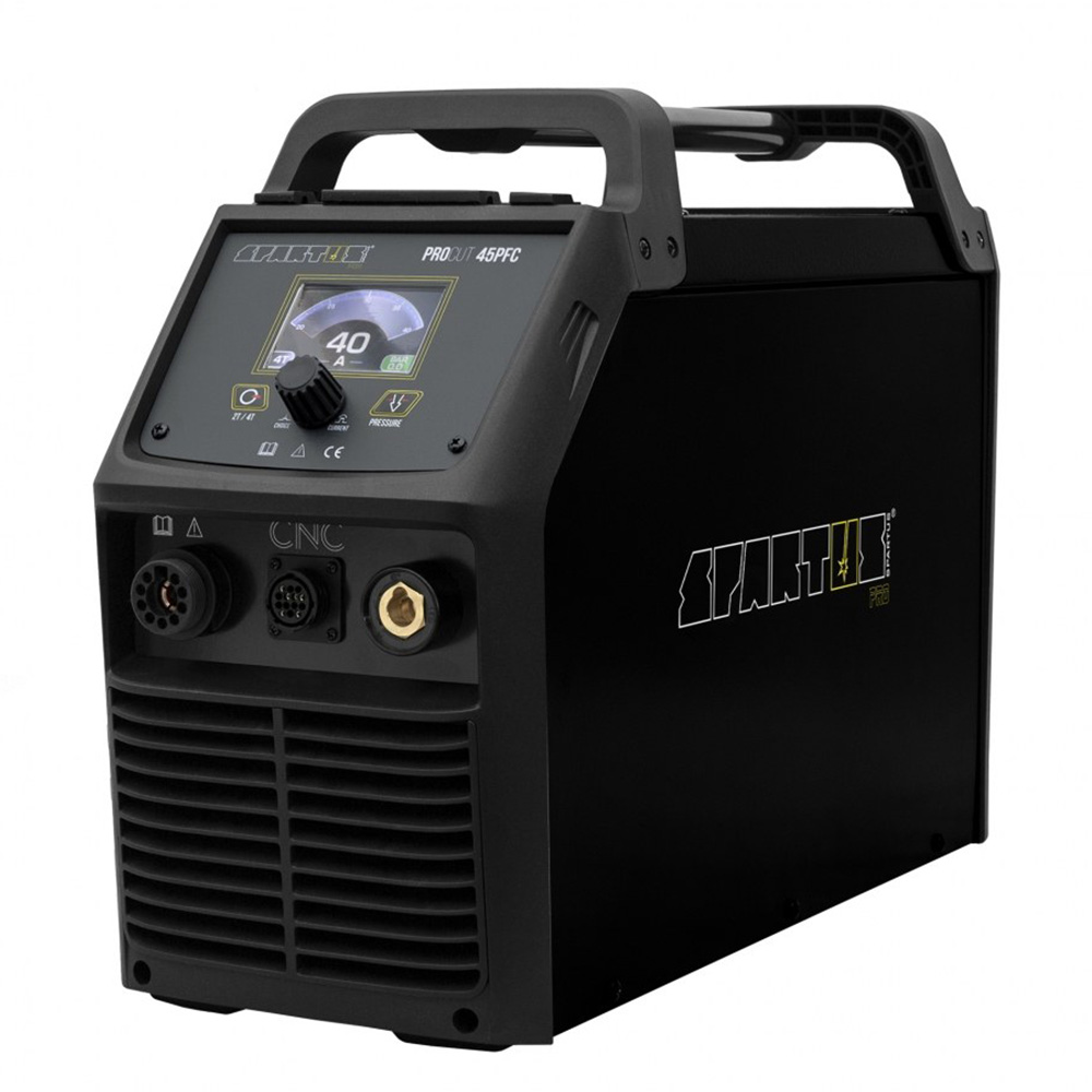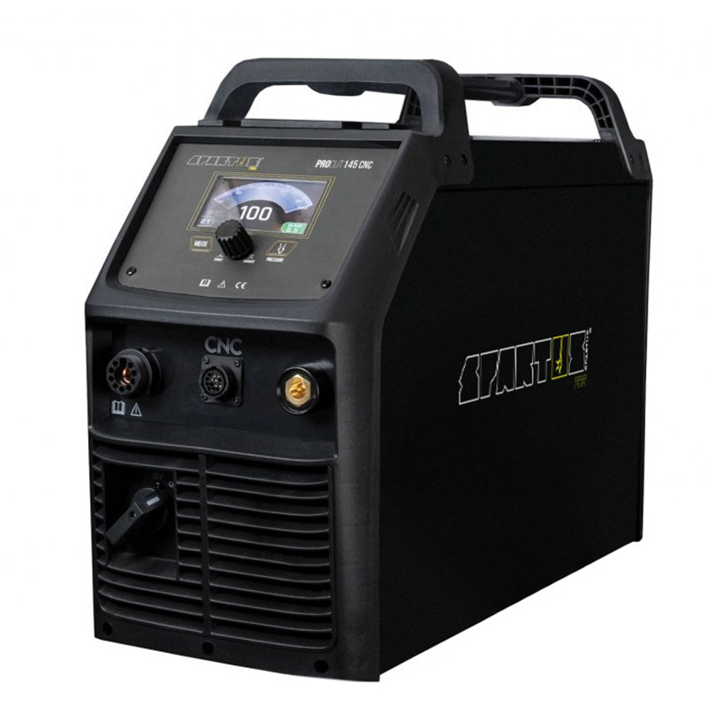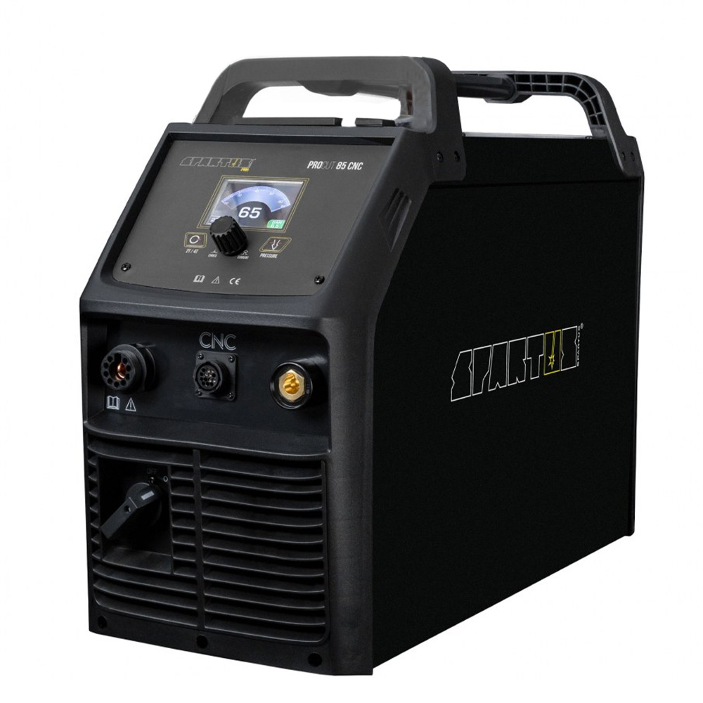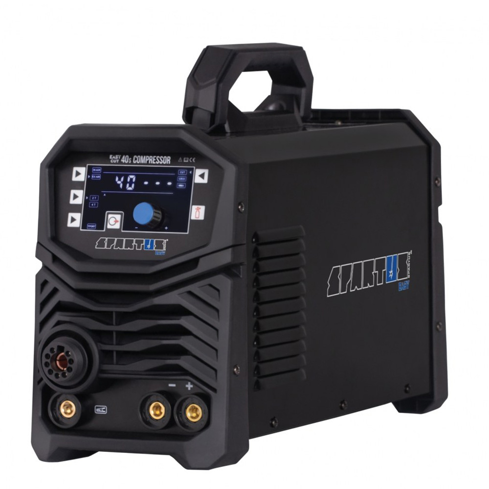 Smaller models operate on a 230V power supply, while industrial SPARTUS plasma cutters require a 400V three-phase supply. The choice depends on the material thickness and the intended application.