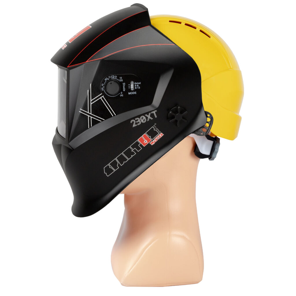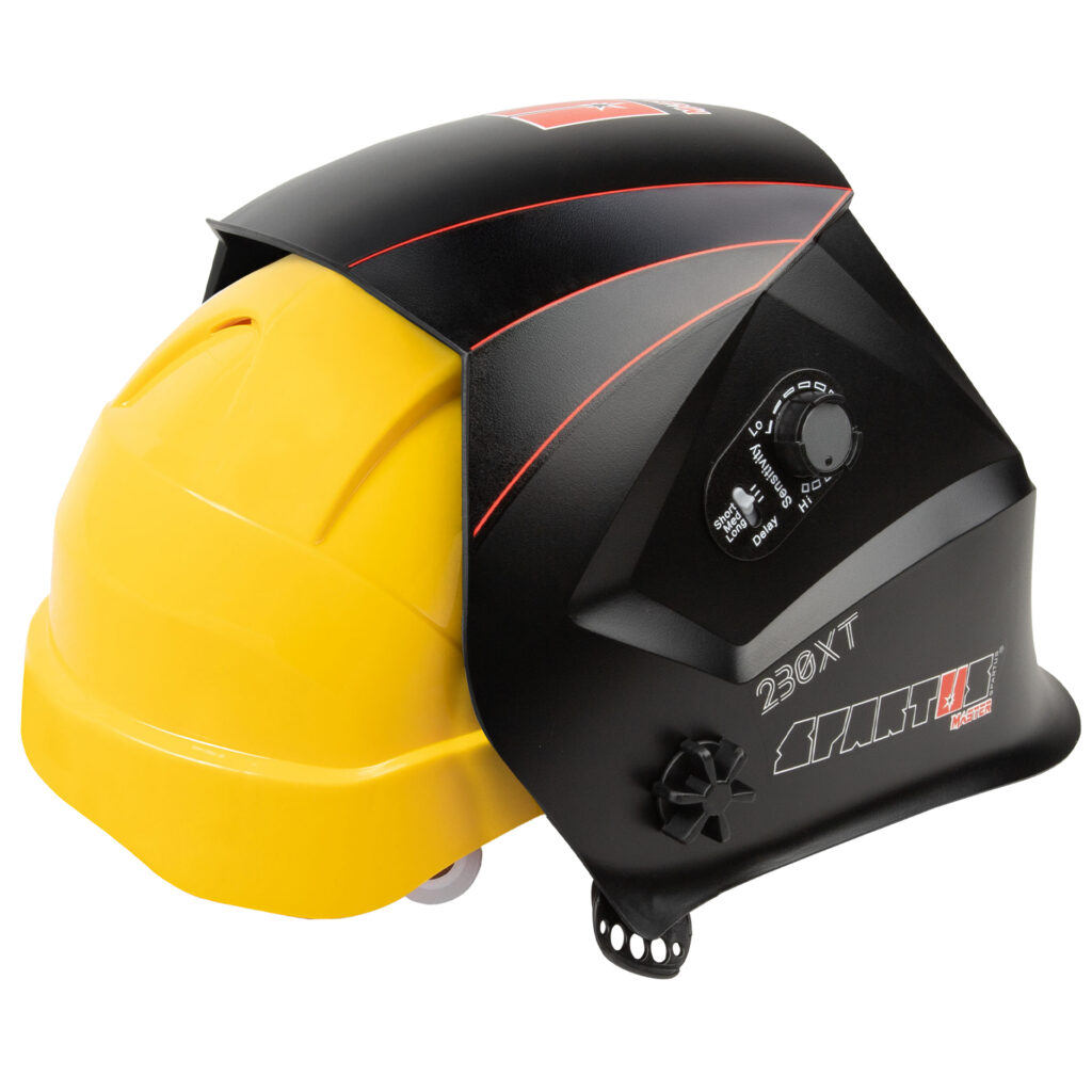 For situations requiring a higher level of safety—such as working at heights, inside tanks, or on industrial installations—the SPARTUS Master 230XT is available in a version with a safety helmet. A dedicated adapter connects the welding helmet to the hard hat, meeting strict health and safety requirements while ensuring comfort and reliability in demanding conditions.