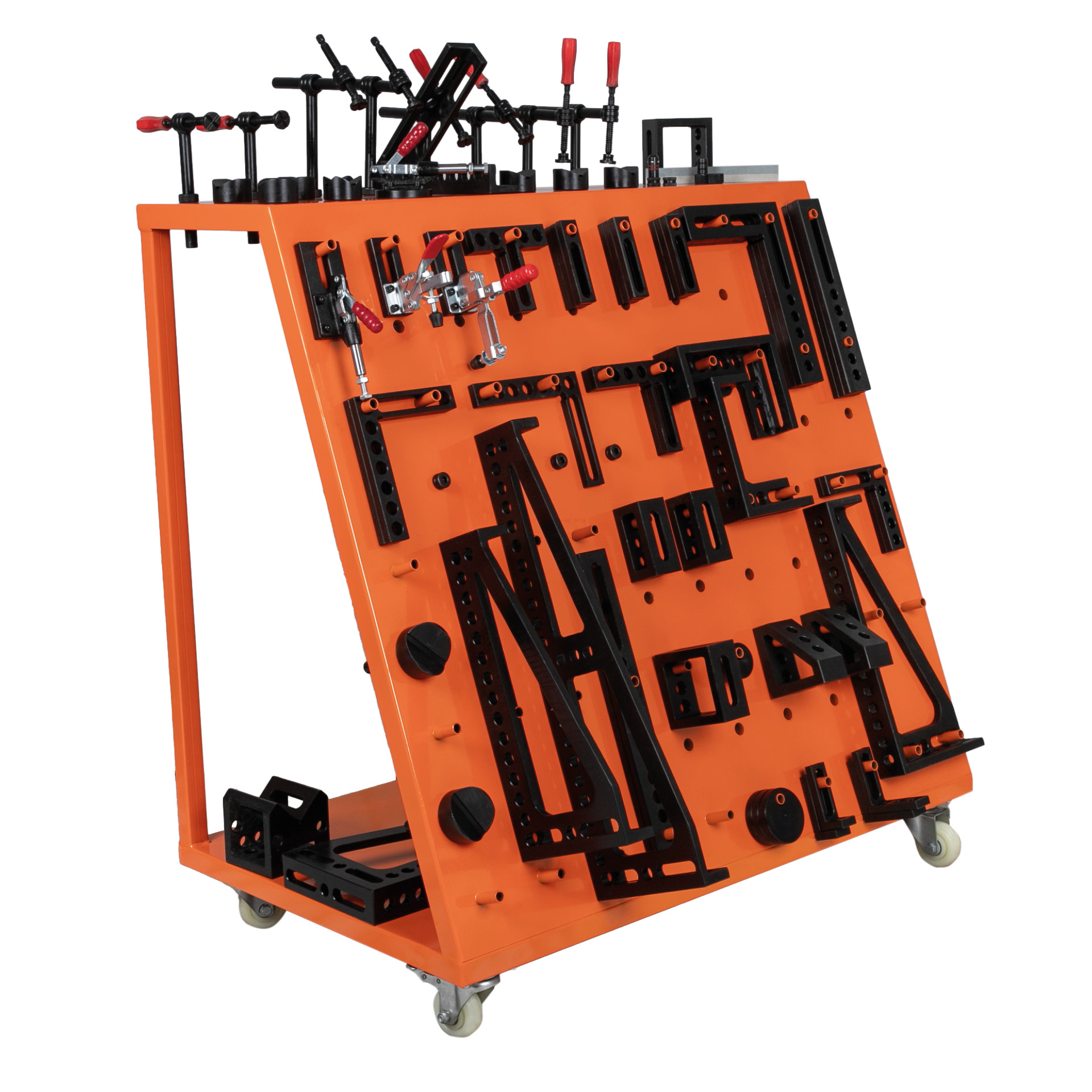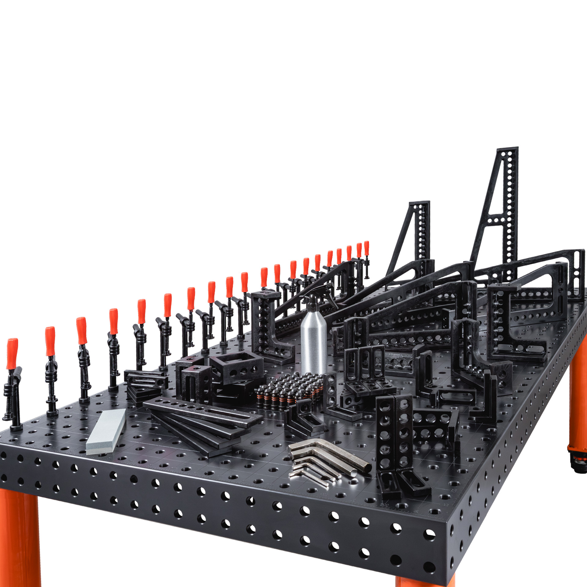 SPARTUS offers a wide range of accessories for D16 welding tables that allow you to fully utilize your workstation’s potential. We offer both individual components and complete accessory kits tailored to user needs. The range includes welding clamps, angle brackets, prisms, locating pins, sockets, stoppers, and clamping blocks – all compatible with the D16 hole system. With these accessories, you can easily and precisely secure workpieces, expand your working area, and increase accuracy and efficiency when working with the SPARTUS D16 table.